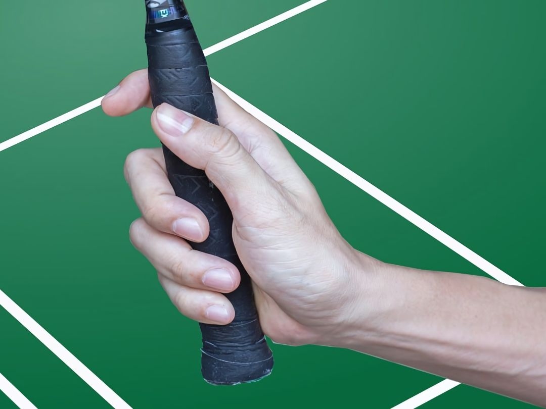 Cách cầm vợt cũng tương tự như cách bắt tay: Ngón cái của bạn nên được đặt thoải mái trên bề mặt rộng hơn của tay cầm. Những phần còn lại của bàn tay được đặt tương tự như khi bắt tay. Bạn nên cầm vợt một cách thoải mái, tránh cầm quá chặt. Việc cầm vợt quá chặt sẽ hạn chế sự linh hoạt trong các chuyển động và cũng dễ dẫn đến các chấn thương cổ tay nếu chơi trong thời gian dài.