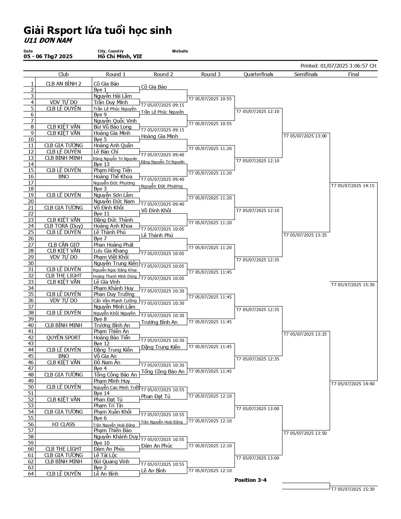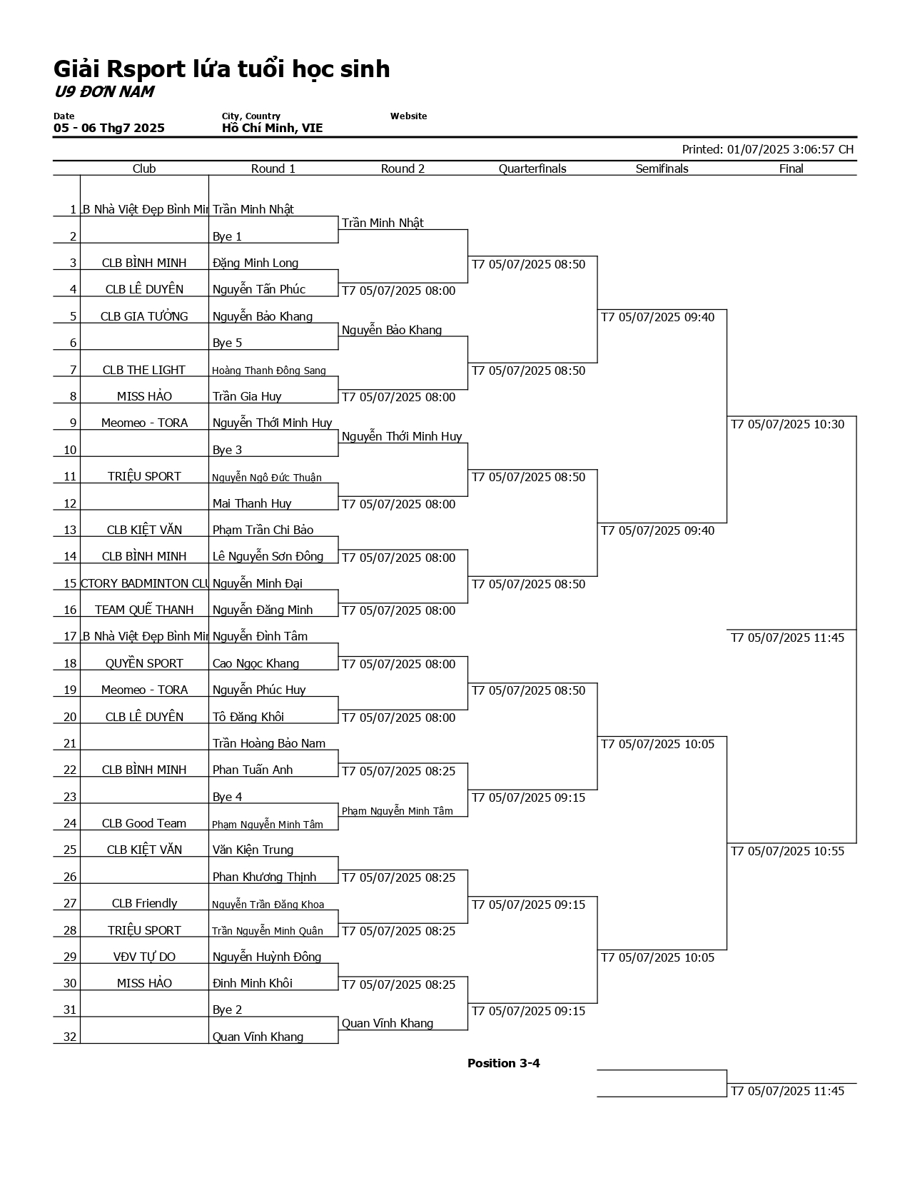 Ban tổ chức "Giải đấu R Sport lứa tuổi hoc sinh - 7/2025", thông báo thi đấu giải đấu, cụ thể như sau:
