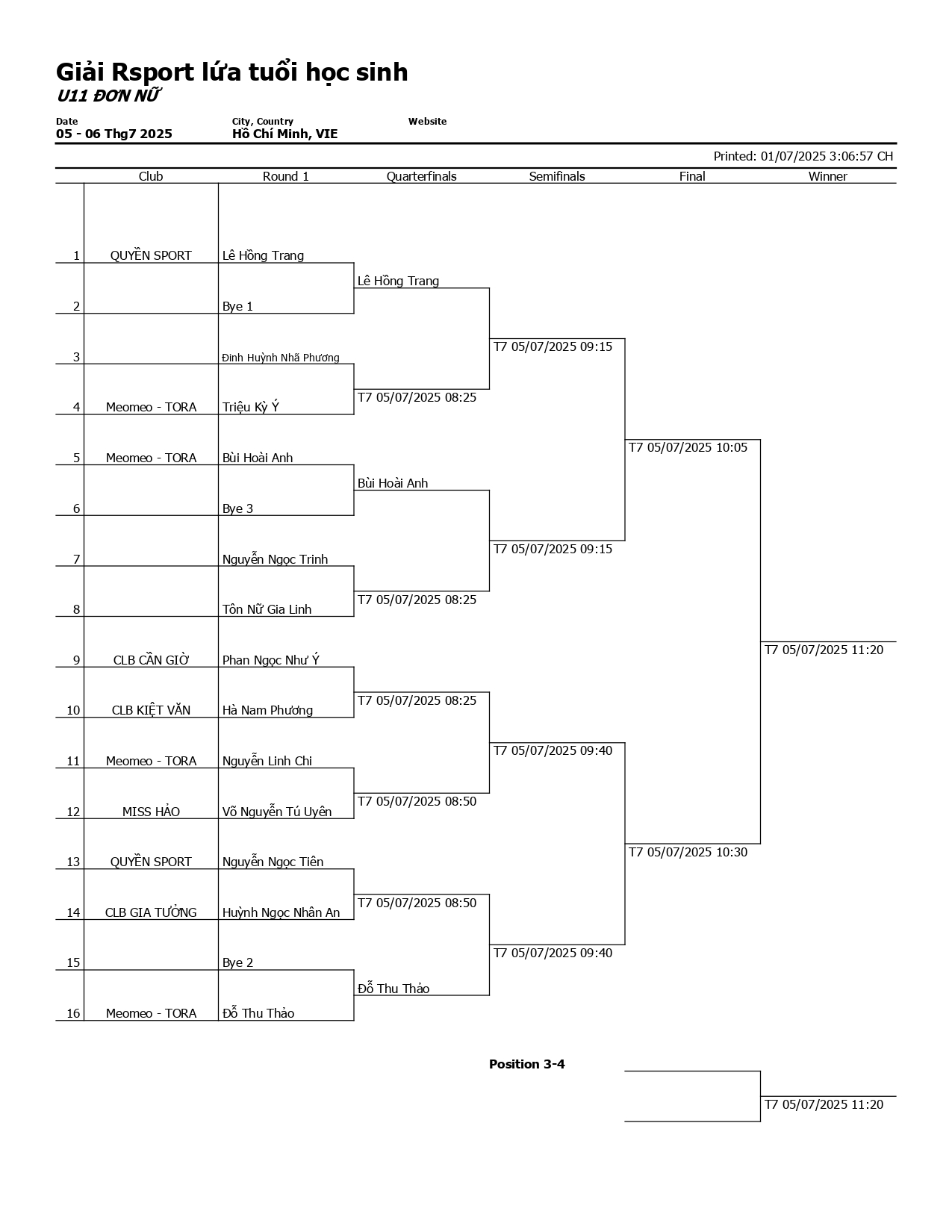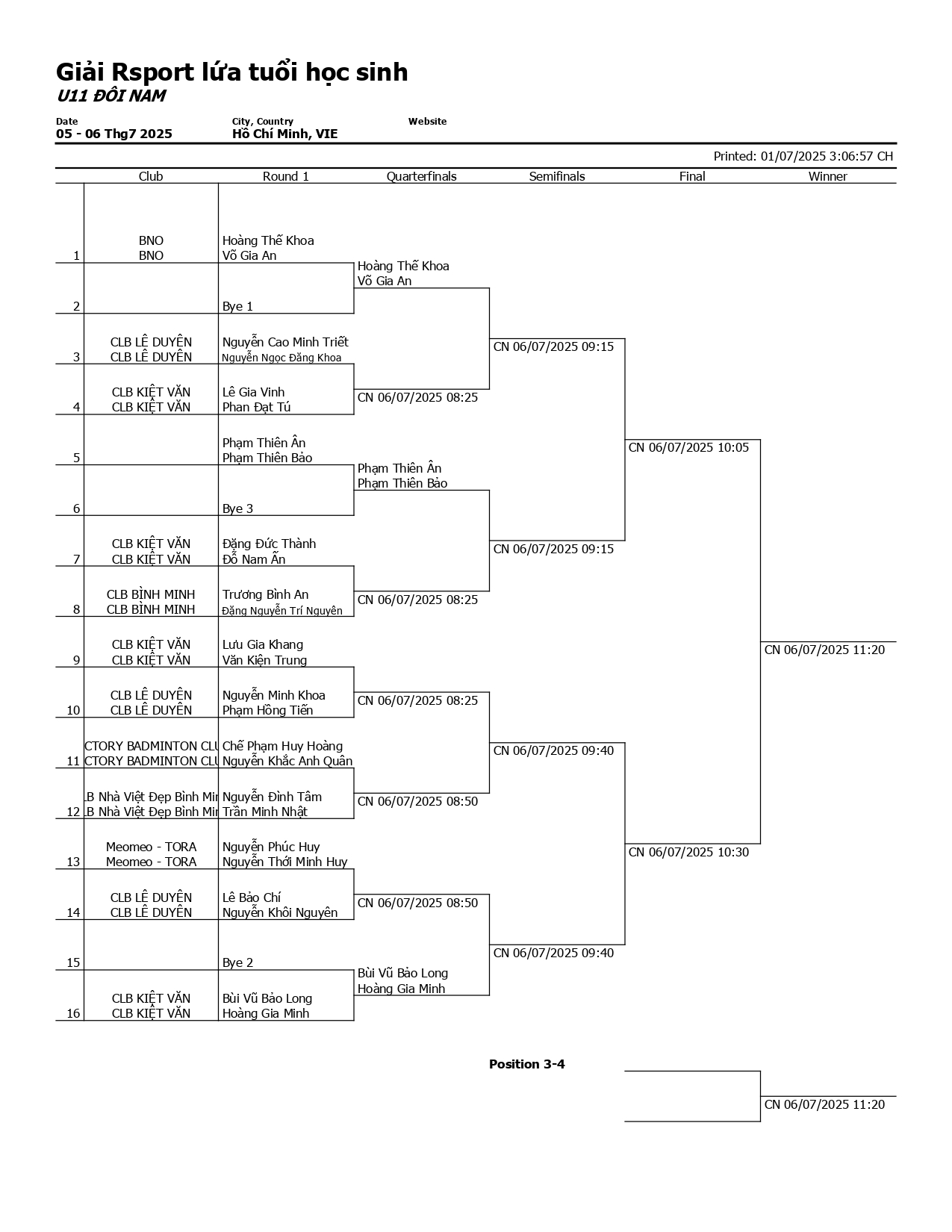 - Lịch thi đấu và kết quả được cập nhật liên tục tại: giaidau.rsport.vn