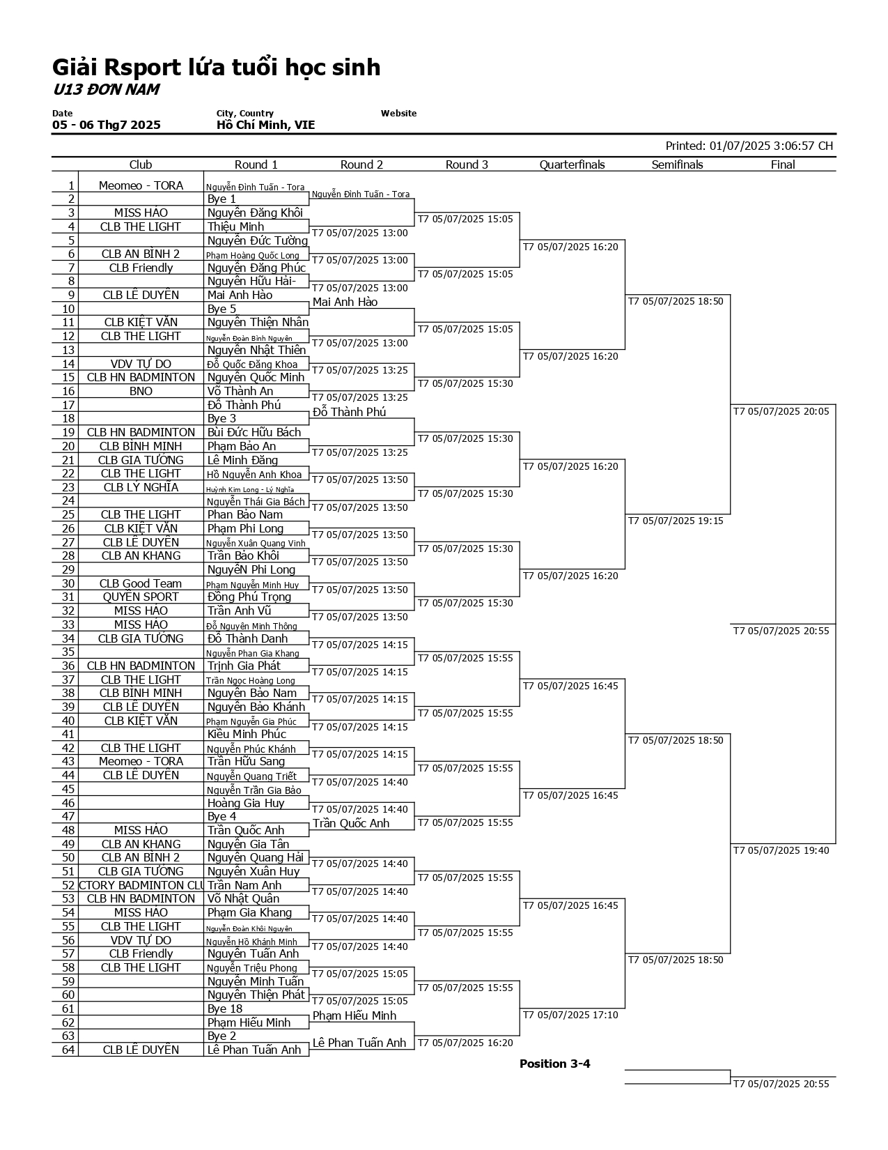 Giờ thi đấu cụ thể của từng trận đấu, của từng nội dung, Quí phụ huynh và các VĐV xem tại: